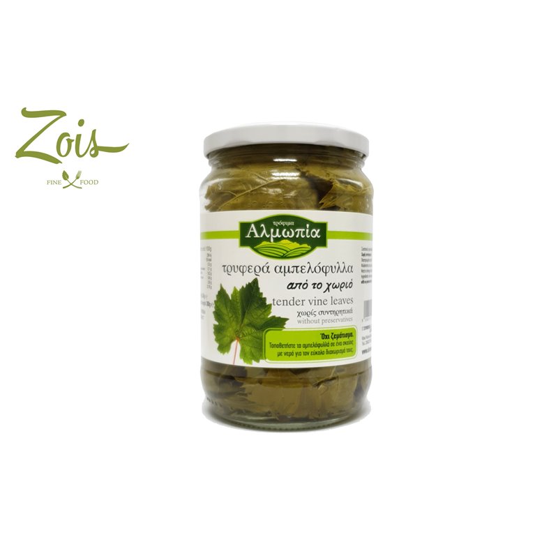 Almopia is a small company that for over 50 years has been producing traditional products based on local ingredients with no preservatives or additives. Their tender vine leaves are some of the best vine leaves that we have found for making dolmadakia (vine leaves stuffed with rice and herbs). They are very tender and easy to use.